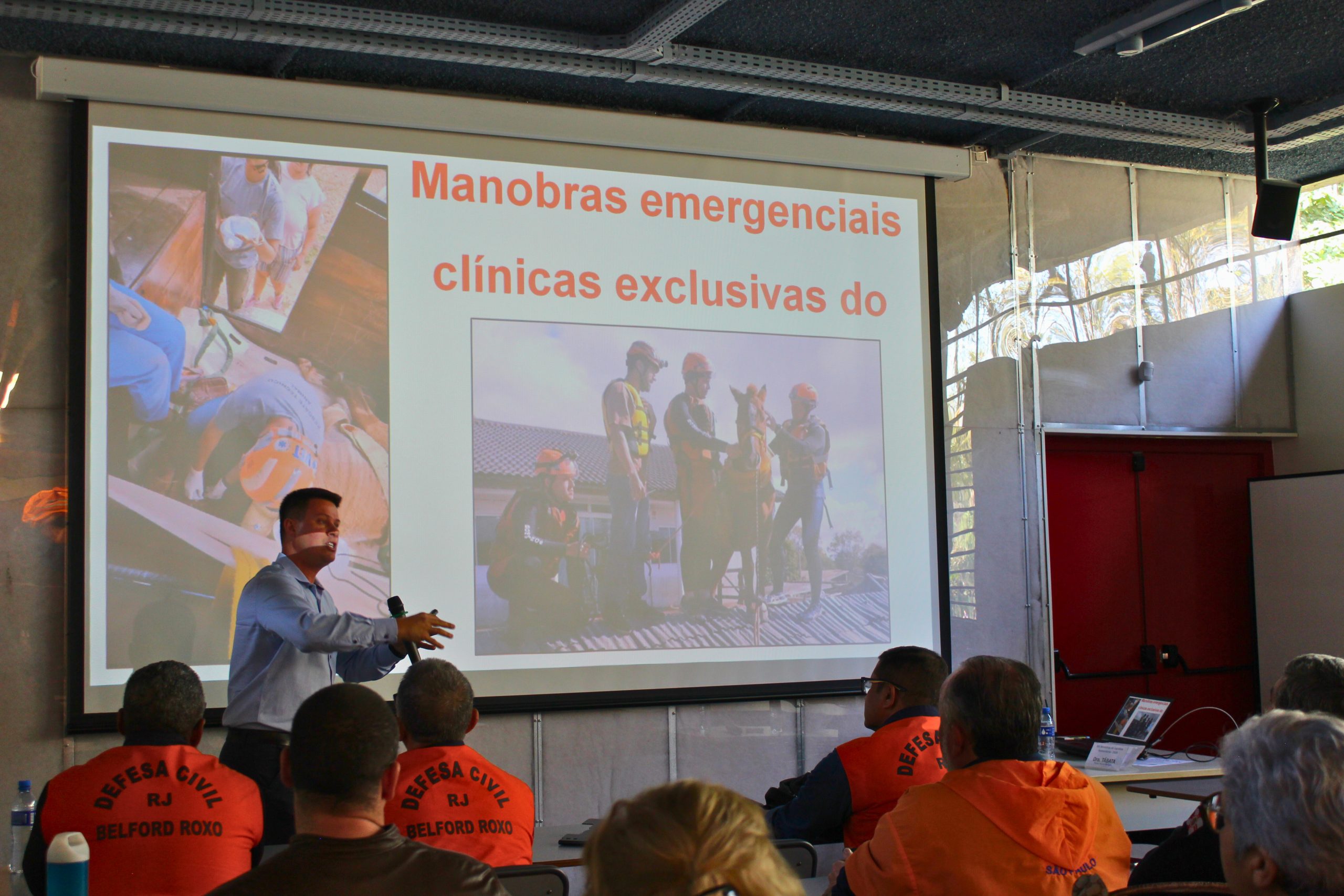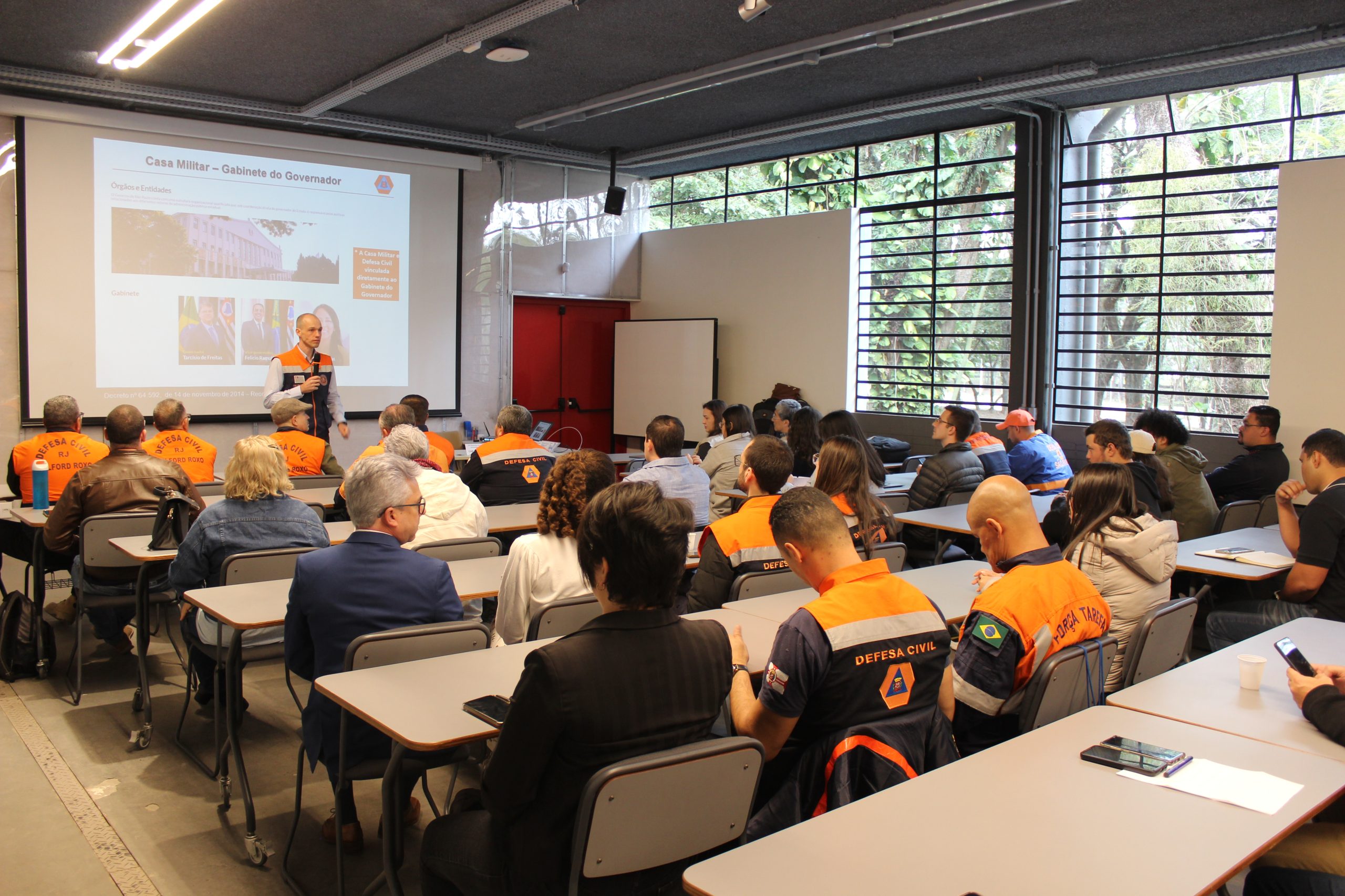 Cap. Caio Mormillo Veneziani (Defesa Civil de SP), abordando a estrutura de comando e controle na resposta a desastres